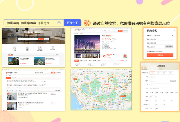 鼎尖公司帮助中介企业在在百度、360、搜狗等搜索引擎进行公司品牌词优化和推广,提升公司品牌知名度和互联网的搜索排名,便于公司房源的推广以及客户的引流。