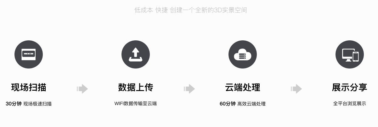 一次30分钟的现场极速扫描,就能将房屋空间克隆成3D模型,WIFI数据传输至云端,60分钟高效云端处理,全平台展示,支持58安居客、营销小程序等,让你的房源信息快速传播。